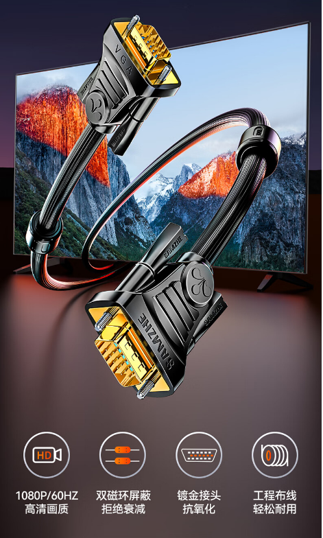 山泽(SAMZHE)工程级VGA线 台式主机笔记本电脑接显示器投影仪高清视频转接线 3+6铜芯30米 VM-2300 yykj-240320092051