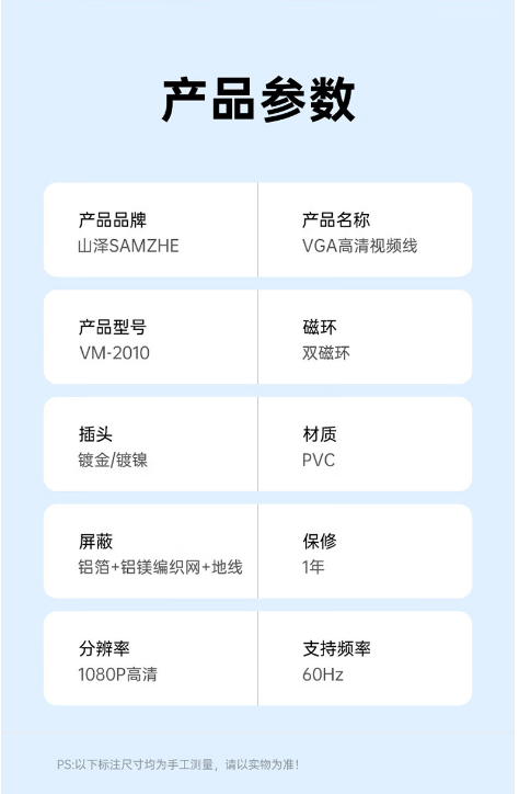 山泽(SAMZHE)工程级VGA线 台式主机笔记本电脑接显示器投影仪高清视频转接线 3+6铜芯25米 VM-2250 yykj-240320092129