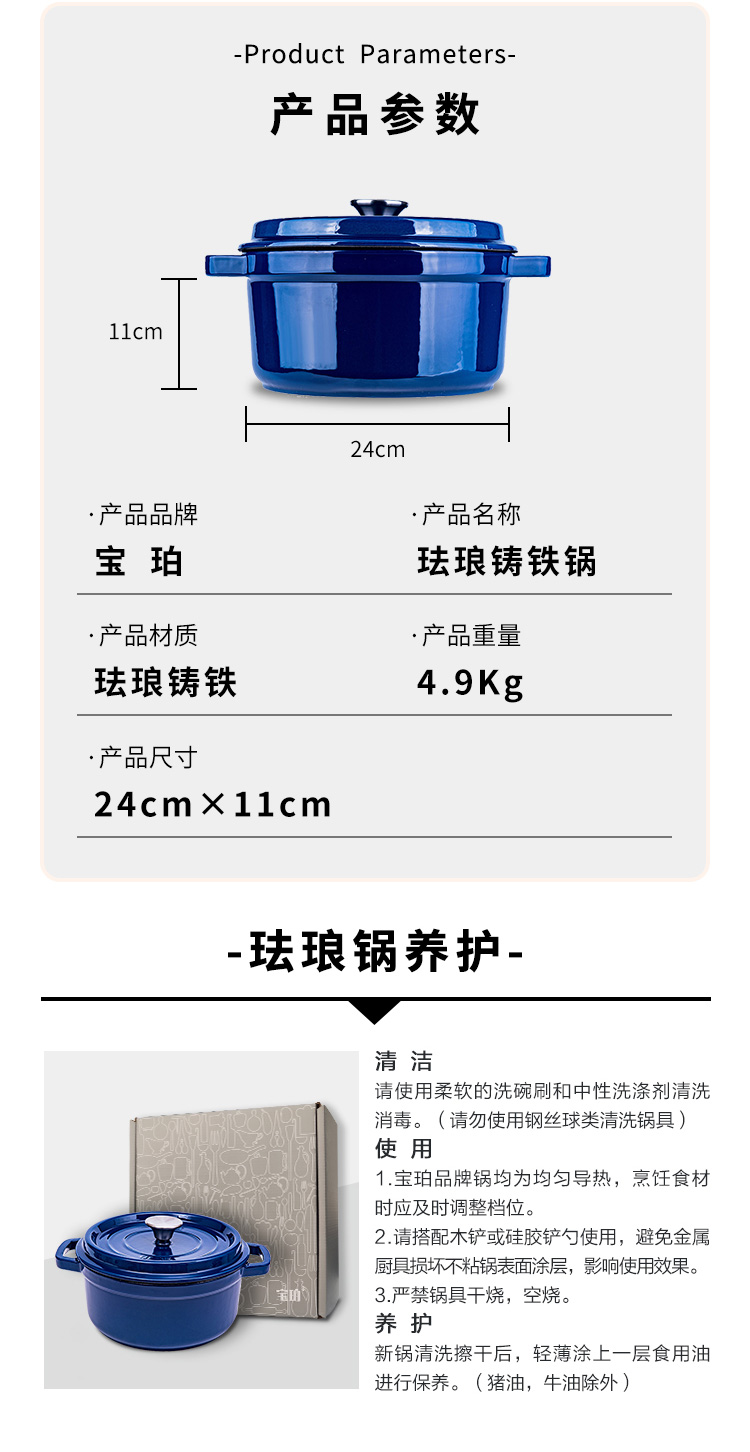 宝珀BP-01珐琅铸铁锅 蓝色 yykj-240321153651