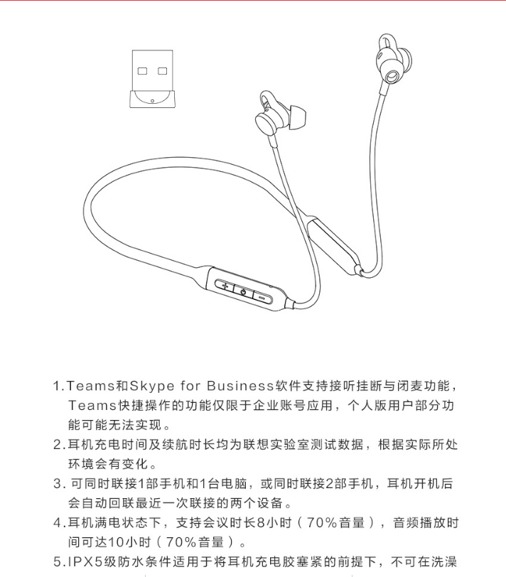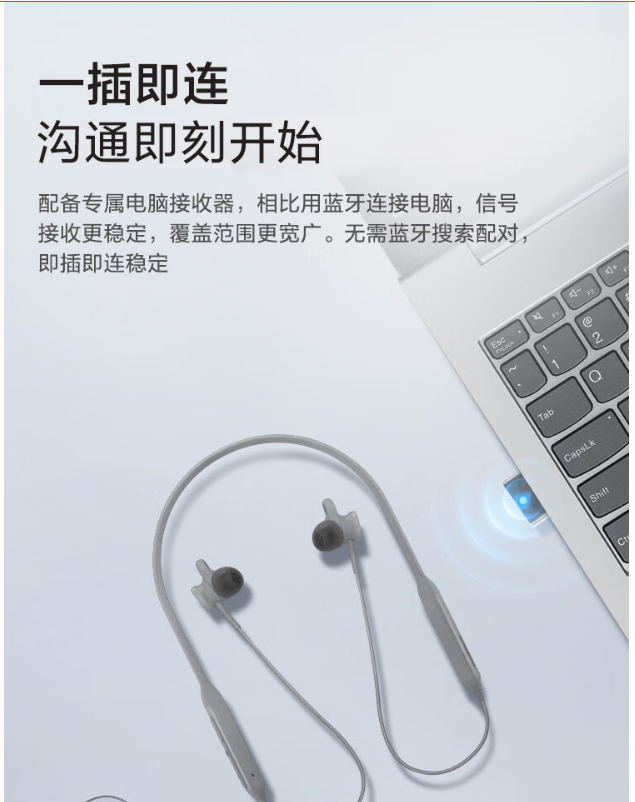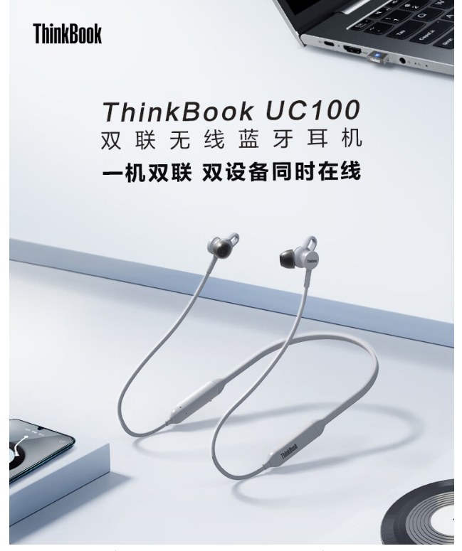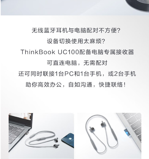 联想ThinkBook双联会议耳机网络在线教育学习培训PC直连客服环境降噪带蓝牙适配器 UC100