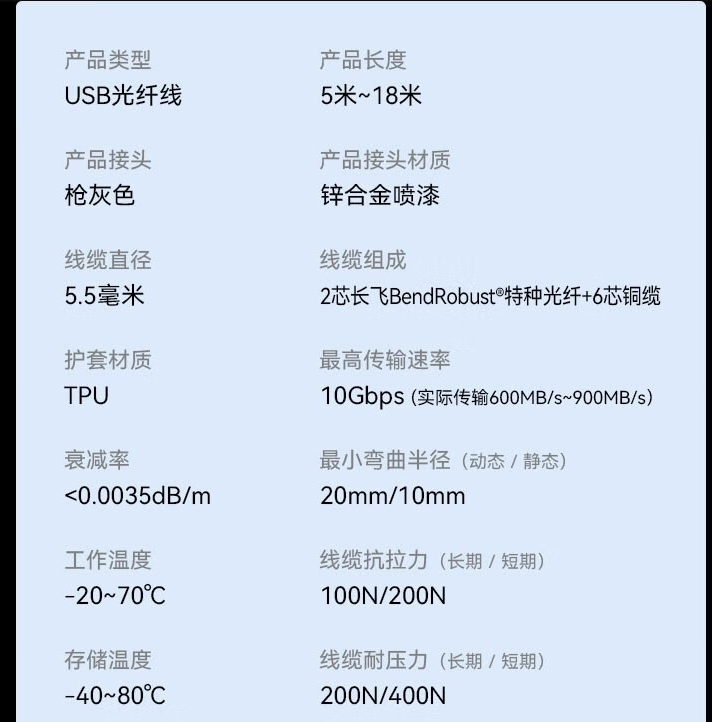菲伯尔(FIBBR)USB3.2延长线公对母长距离光纤高速传输10Gbps工业工程带供电数据连接线 USB3.2延长线【兼容USB2.0】 10米