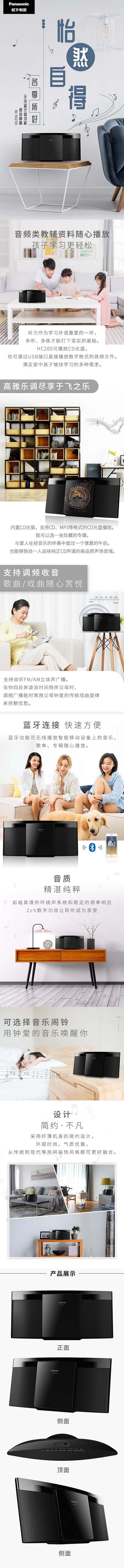 松下(Panasonic)SC-HC200GK-K 无线蓝牙音箱/音响 CD/USB外接/迷你音响