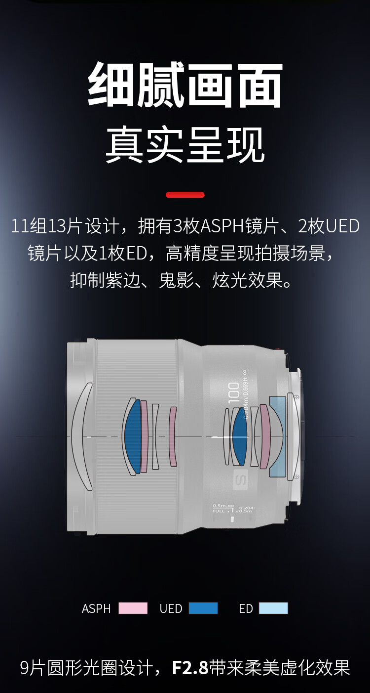 松下(Panasonic)S-E100GK L卡口 100毫米 F2.8 中长焦 定焦 微距 镜头