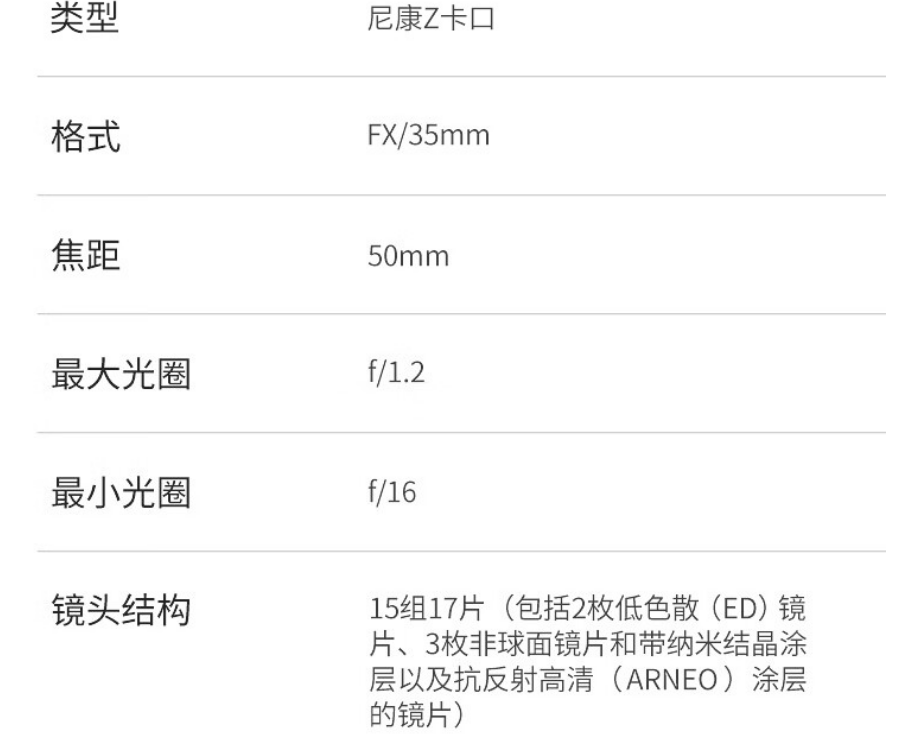 尼康(Nikon)Z 50mm f/1.2 S 全画幅 微单 大光圈定焦镜头