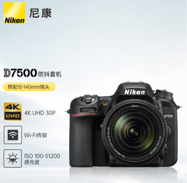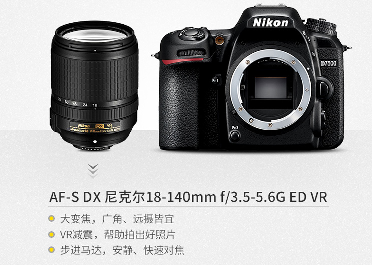 尼康(Nikon)D7500 单反相机 数码相机 (AF-S DX 尼克尔 18-140mm f/3.5-5.6G ED VR 单反镜头)套机