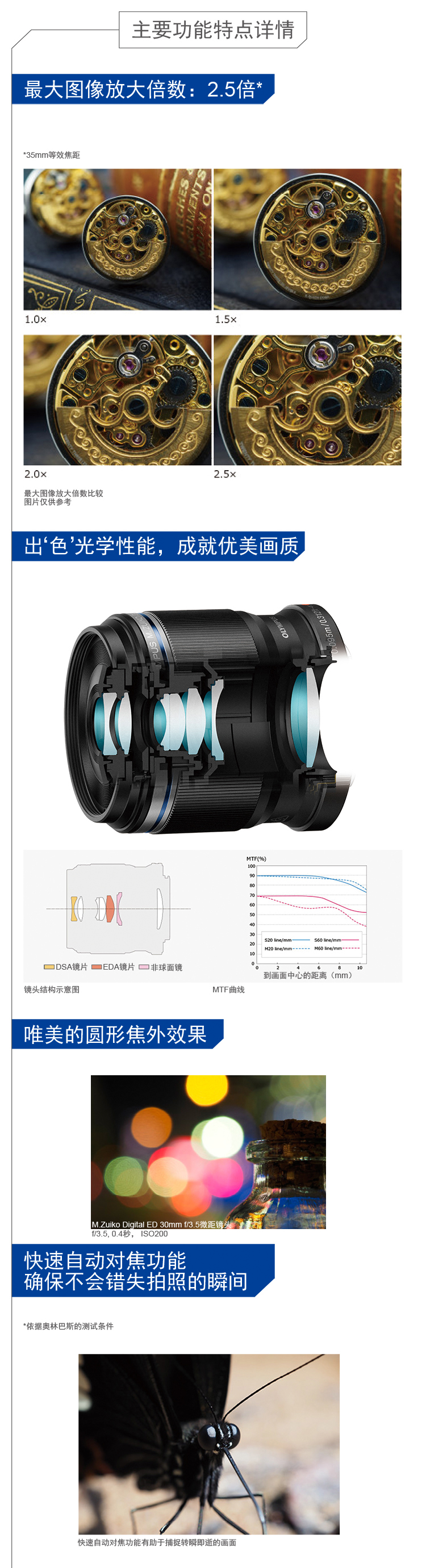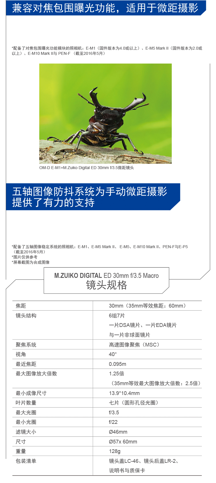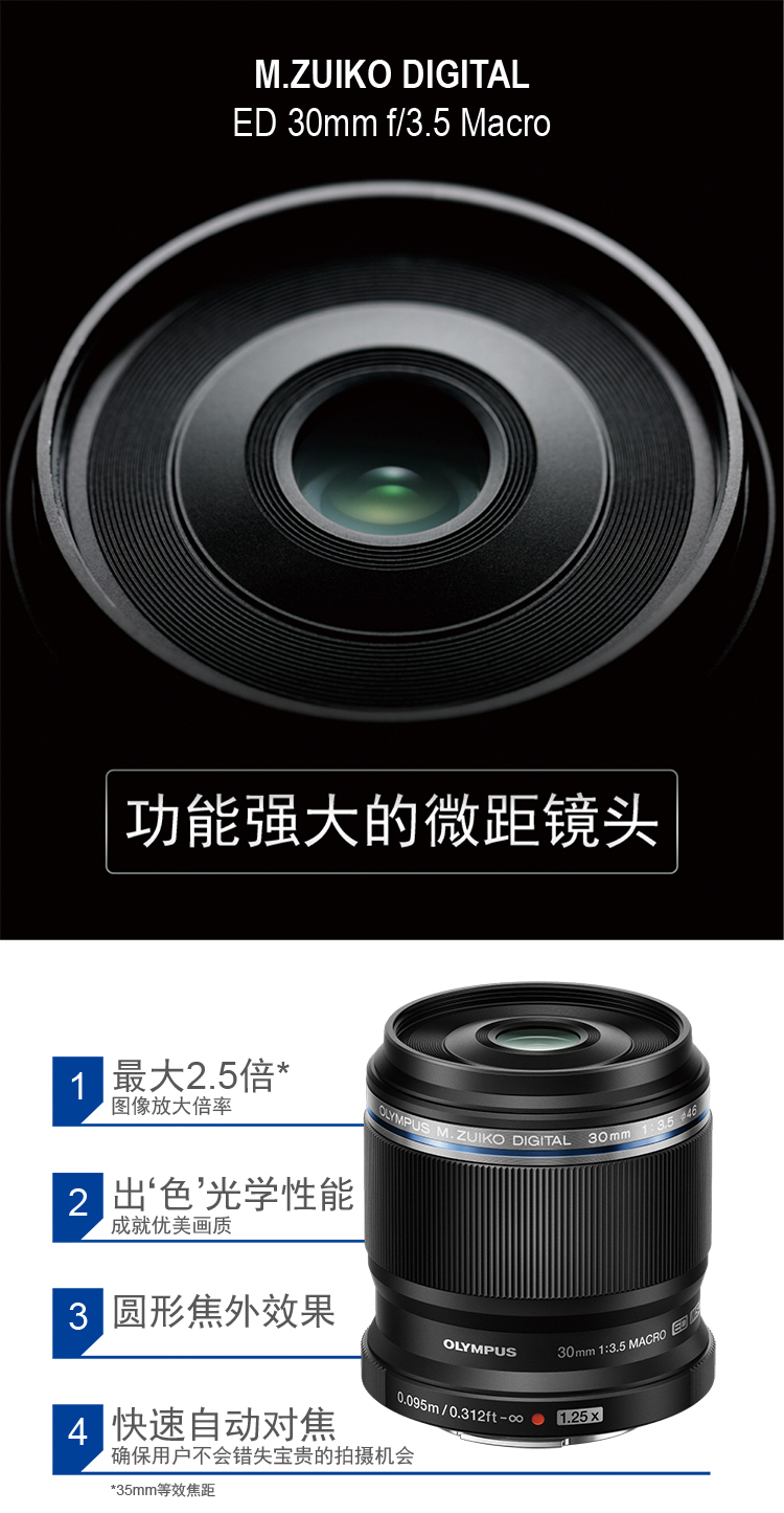 奥林巴斯(OLYMPUS)M.ZUIKO DIGITAL ED 30mm F3.5 Macro 微距镜头 微单镜头 等效60mm