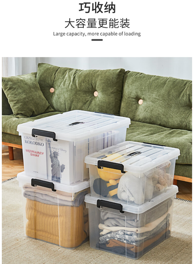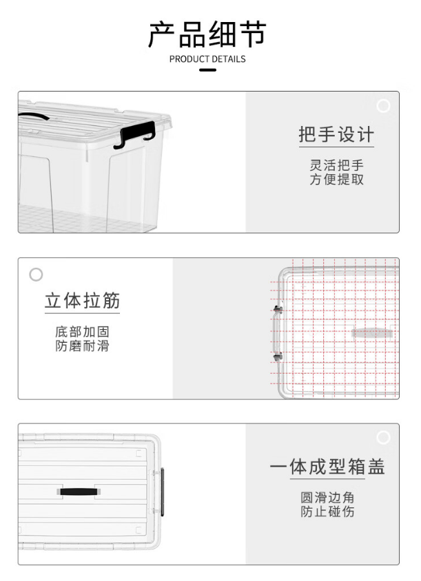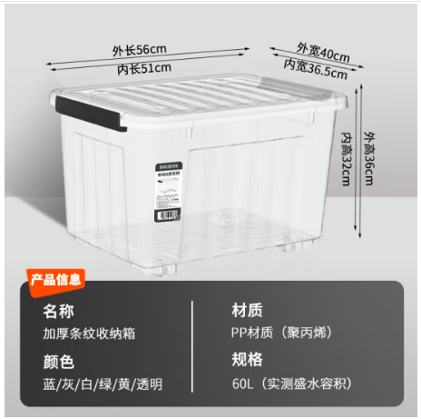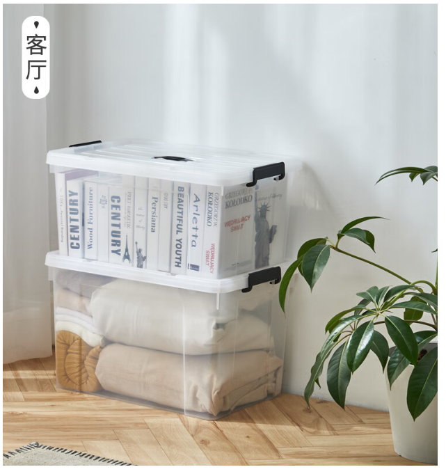 SPACEXPERT衣物收纳箱塑料整理箱60L透明 3个装 带轮