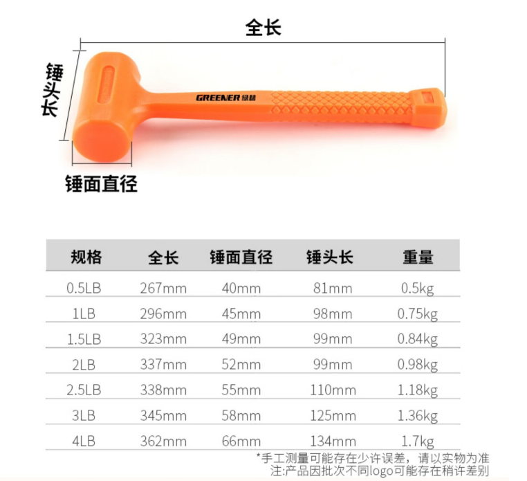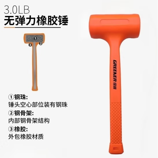绿林(GREENER)橡胶锤子贴地板塑料榔头无弹力锤3磅无弹力橡胶锤037121