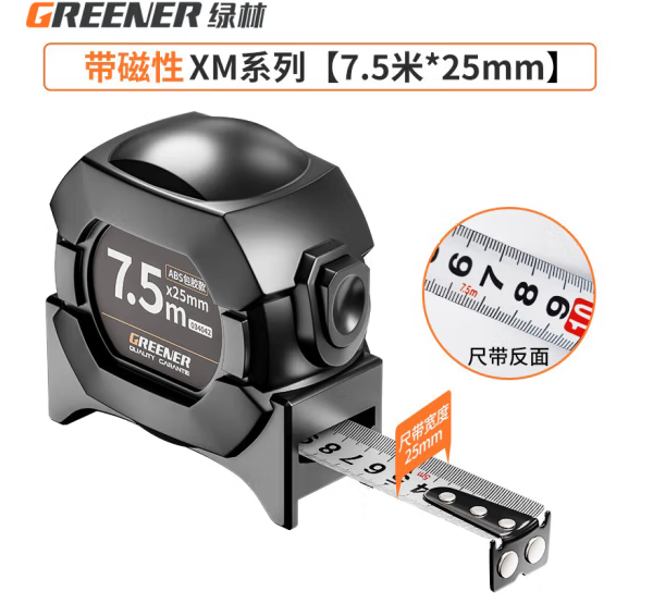 绿林(GREENER)卷尺钢卷尺不锈钢测量工具 I级精度 包胶自锁款7.5米*25mm 034042