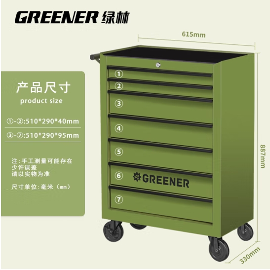 绿林(GREENER)工具推车 七抽收纳箱013355X