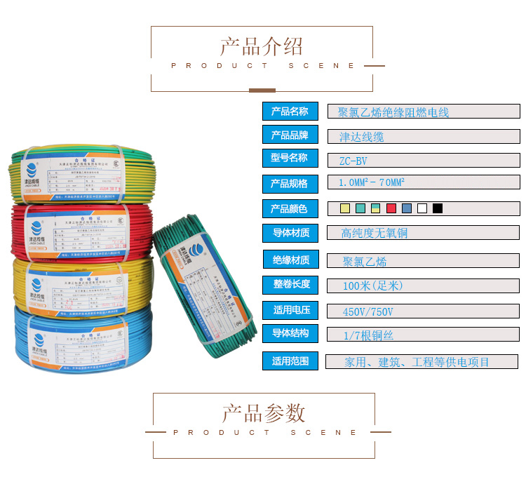 津达 BV2.5平方 黄色 塑铜线 100米/盘 国标