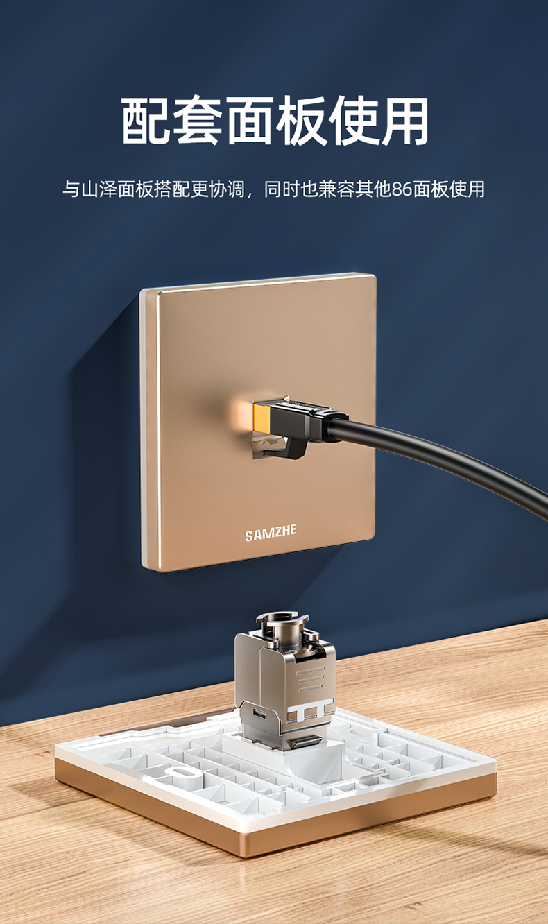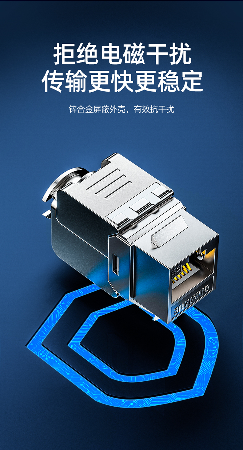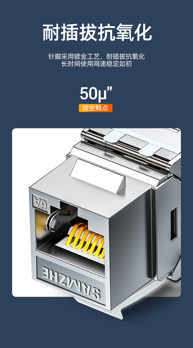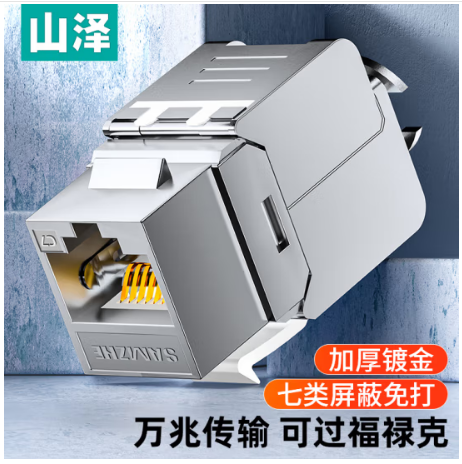 山泽超六类网络模块 CAT6A网线插座面板屏蔽免打模块RJ45水晶头母座电脑连接头 50u镀金加厚10个装MKC-6A10