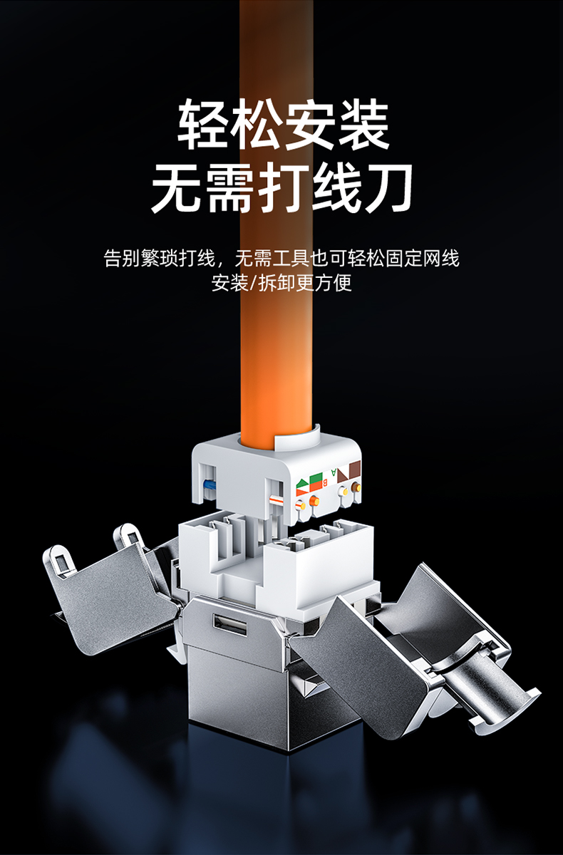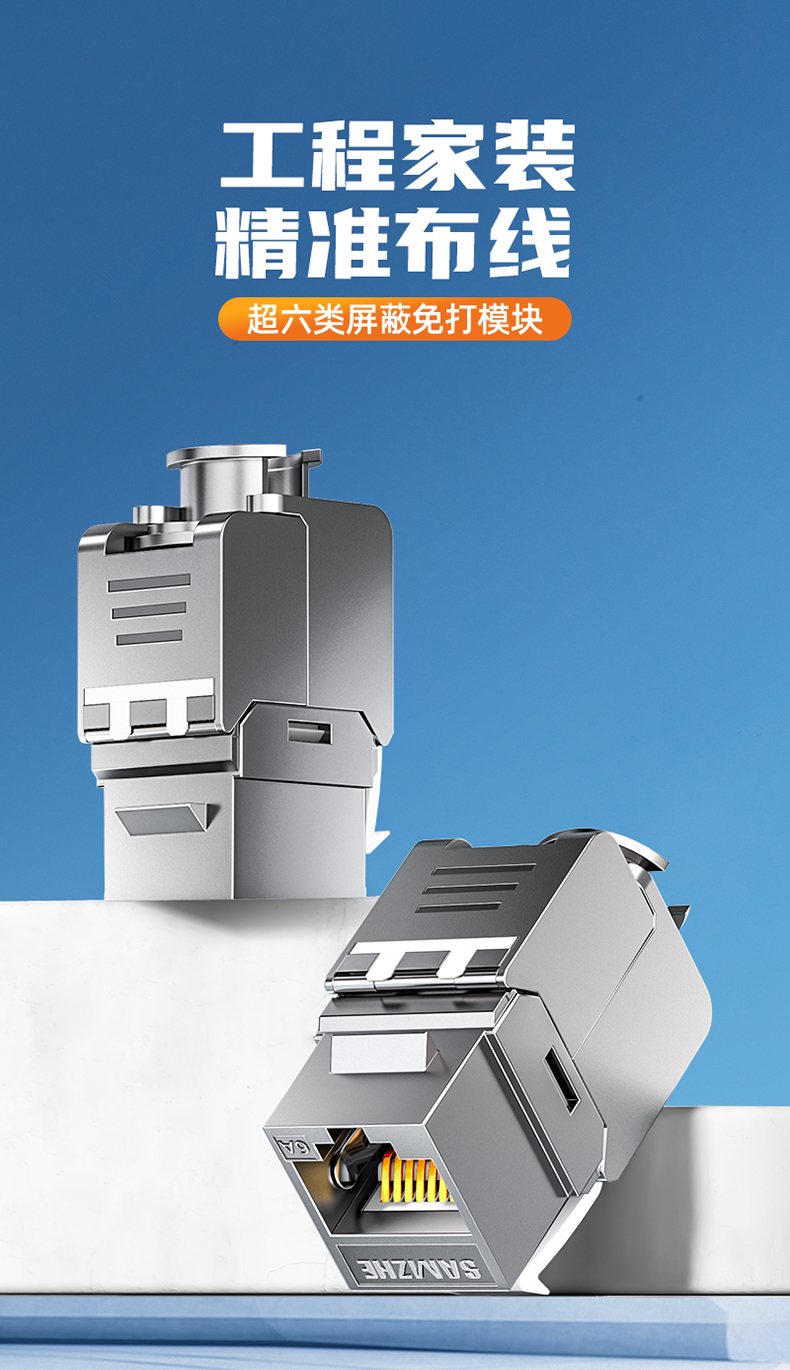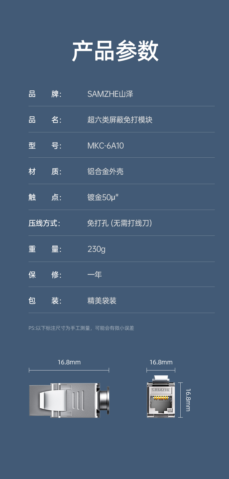 山泽超六类网络模块 CAT6A网线插座面板屏蔽免打模块RJ45水晶头母座电脑连接头 50u镀金加厚10个装MKC-6A10