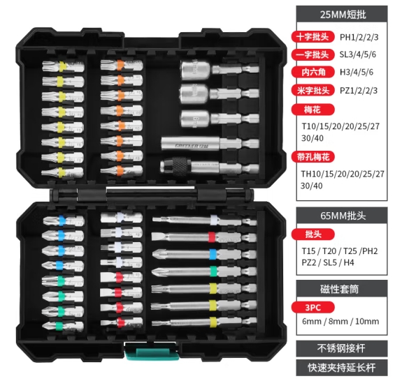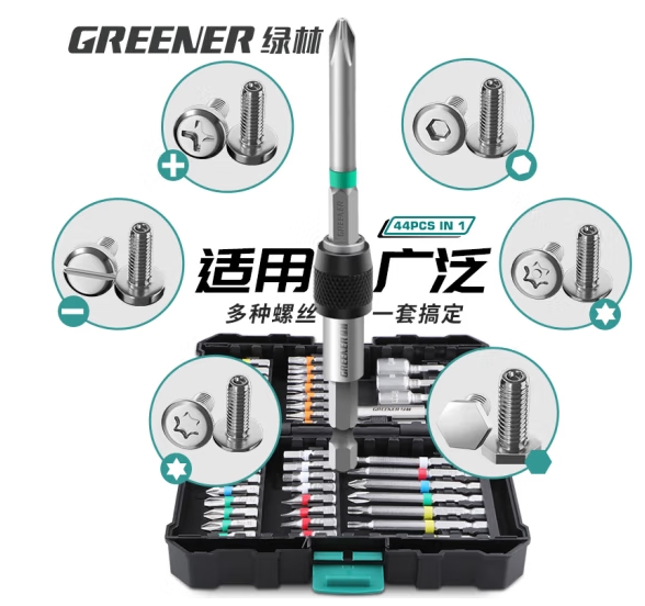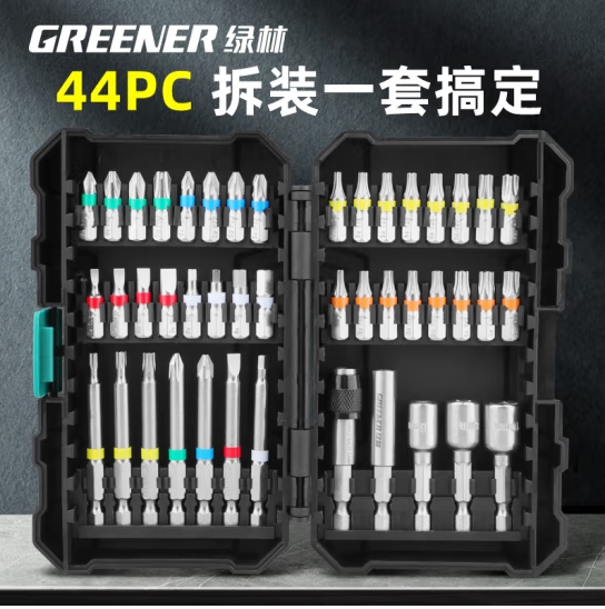 绿林(GREENER)44件批头套装 电动螺丝刀批头内六角起子机钻头十字套筒093000A