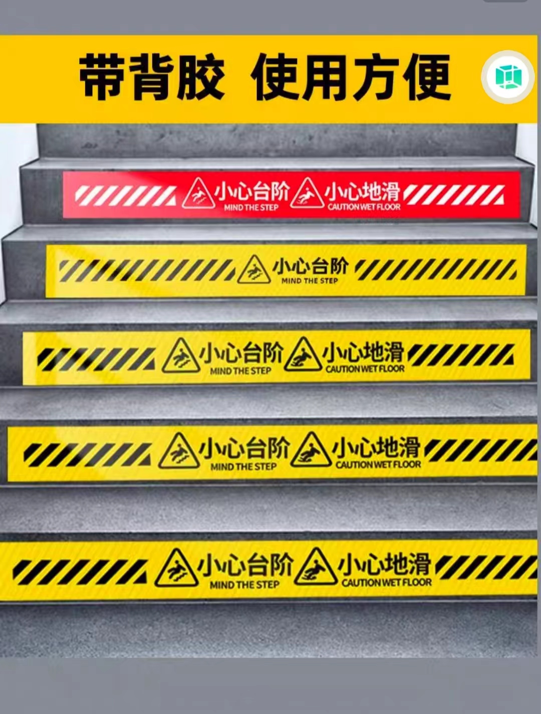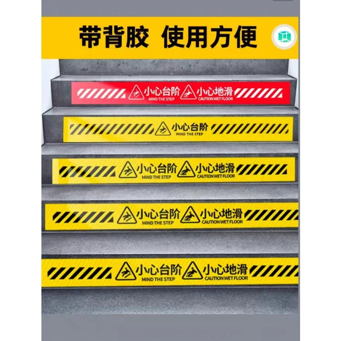 小心台阶地贴当心地滑防水贴纸1米线温馨提示牌卫生间标识牌注意台阶防滑耐磨楼梯安全告示标志指示警示牌子 yykj-240407083824