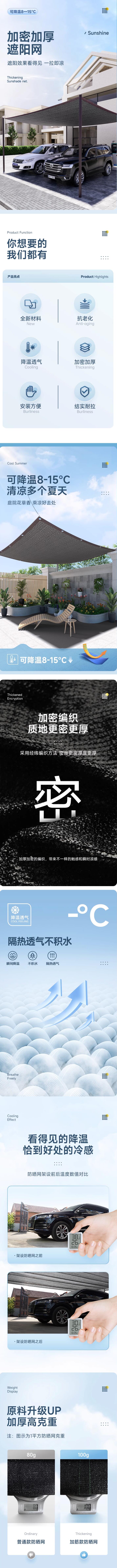 遮阳网100针加厚加密防晒网遮光网14.8*4米 含安装 支持定制尺寸