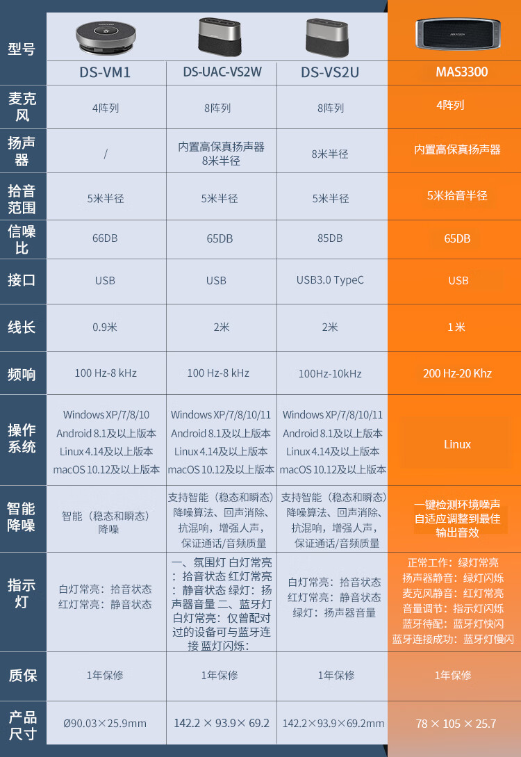 海康威视视频会议全向麦克风 蓝牙无线网络USB扬声器语音智能拾音降噪桌面会议扬声器2.4G无线接电脑 MAS3200 标配