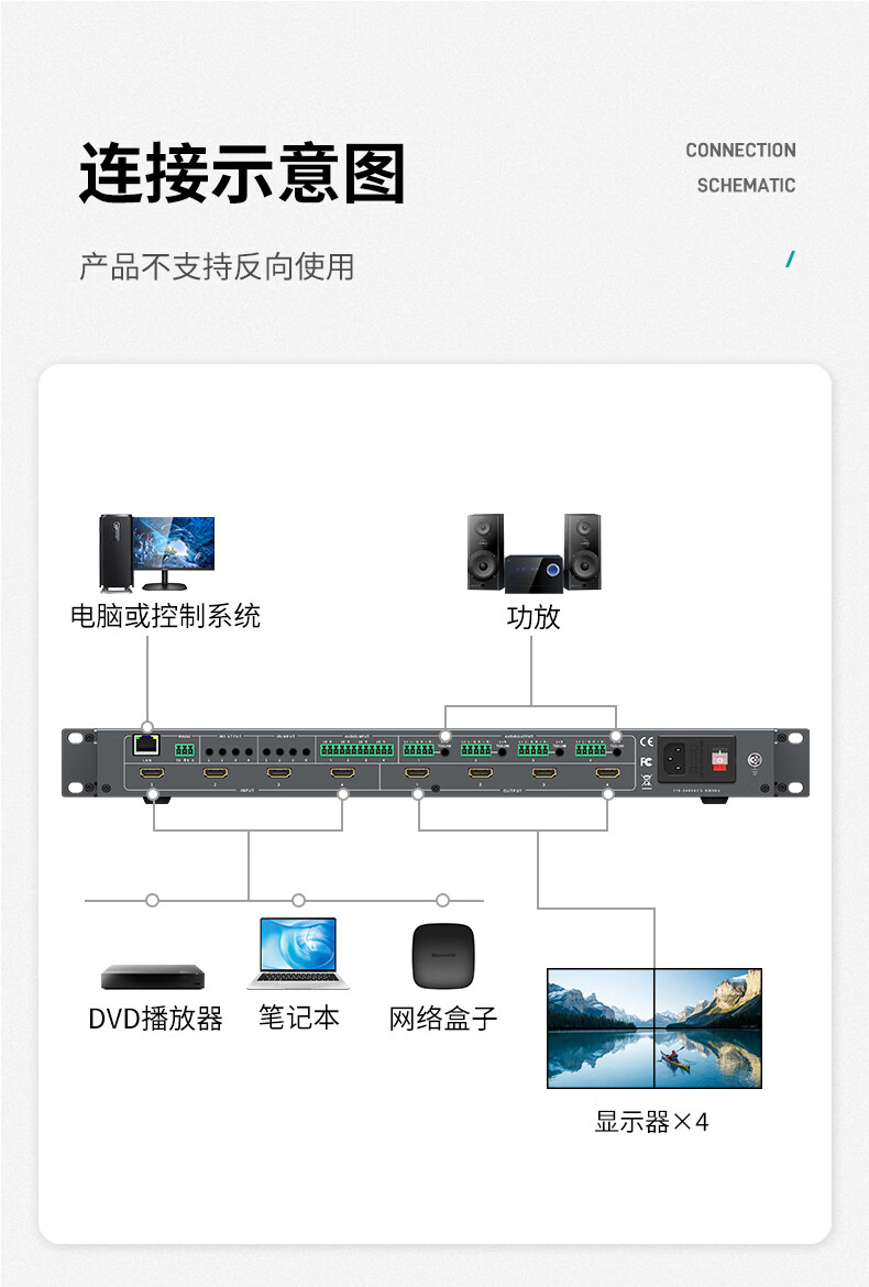 迈拓维矩 MT-viki HDMI矩阵切换器4进4出高清无缝画面拼接器视频会议矩阵音视频分离器 MT-HW0404