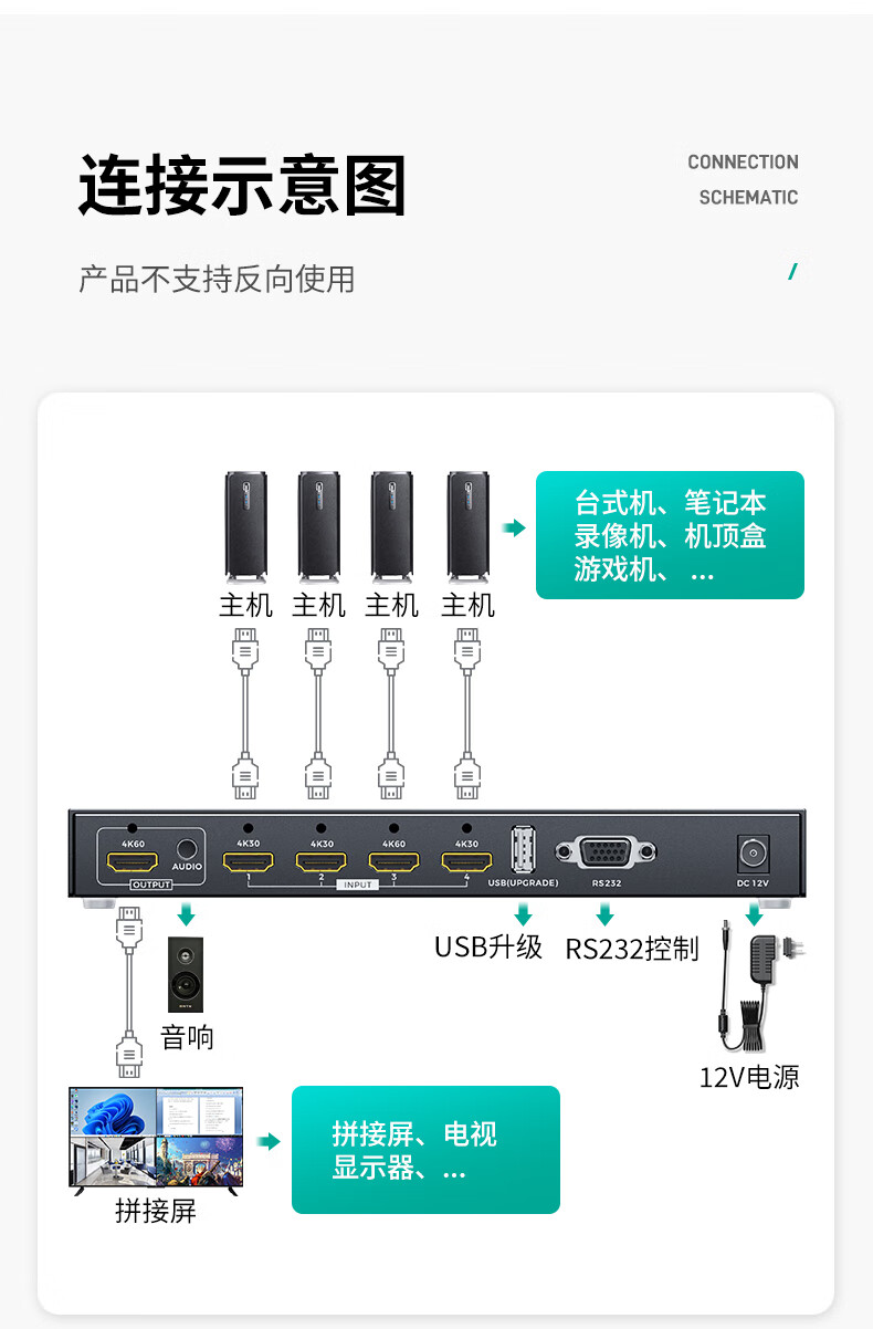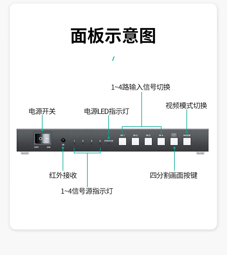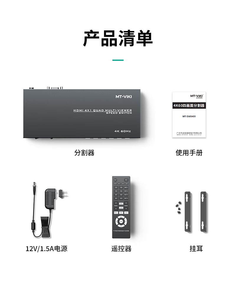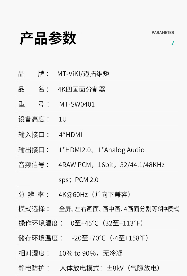迈拓维矩 MT-viki 画面分割器4K 四进一出hdmi分屏器一分四画面合成器 电脑游戏监控视频适配器 MT-SW0401