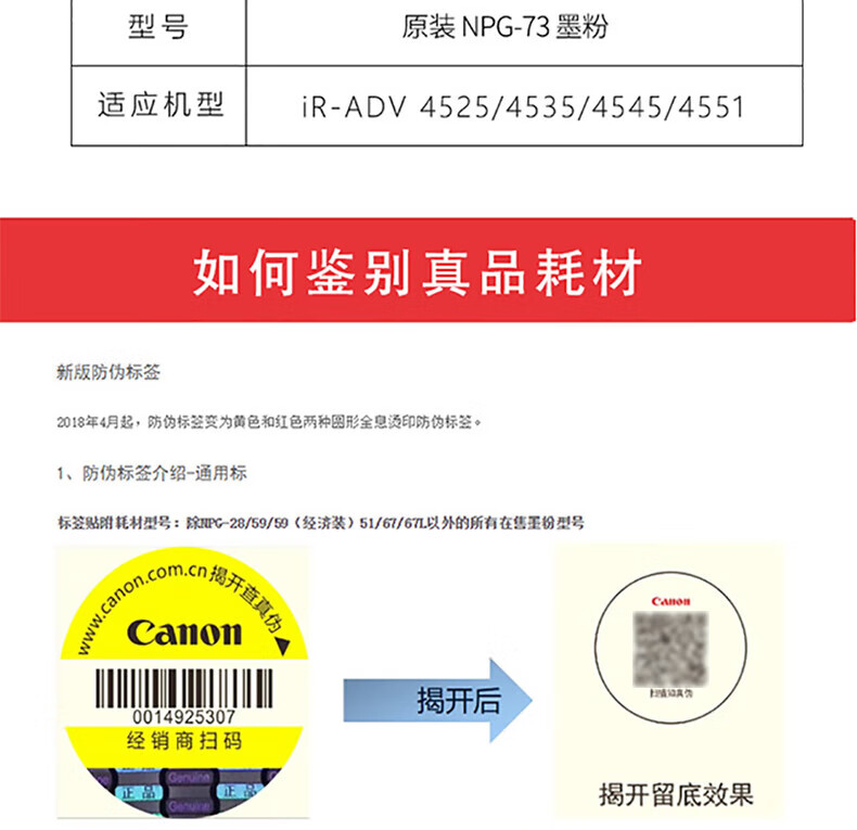 佳能(Canon)NPG-73 BK原装黑色墨粉(适用于iR-ADV 4525/4535/4545/4551/4725/4735/4745/4751)yykj-240412101848