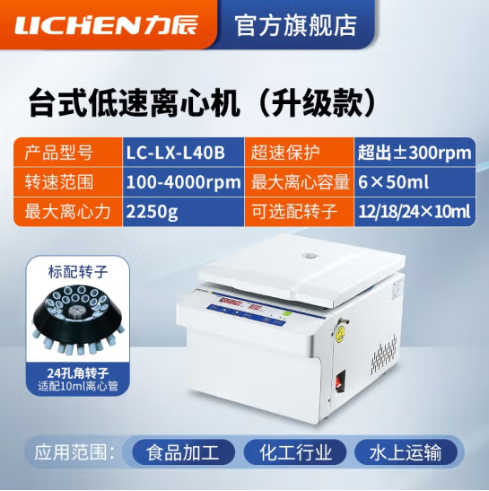 力辰科技(lichen)小型低速prp/prf/脂肪血清分离机pcr实验室定时变速大容量离心机 LC-LCF-04B+角转子-24×10ml