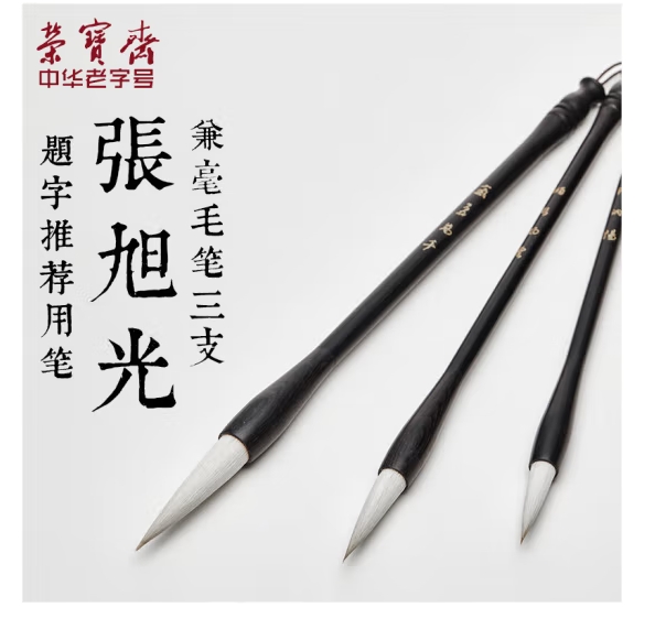 荣宝斋 毛笔套装 高档精品羊兼毫 文房四宝书法国画大中小楷初学者行草楷隶篆书 张旭光三支套装