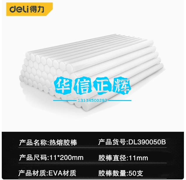 得力热熔胶棒条高粘家用强力手工DIY胶棒DL390050B(11mm*200mm)50支/盒