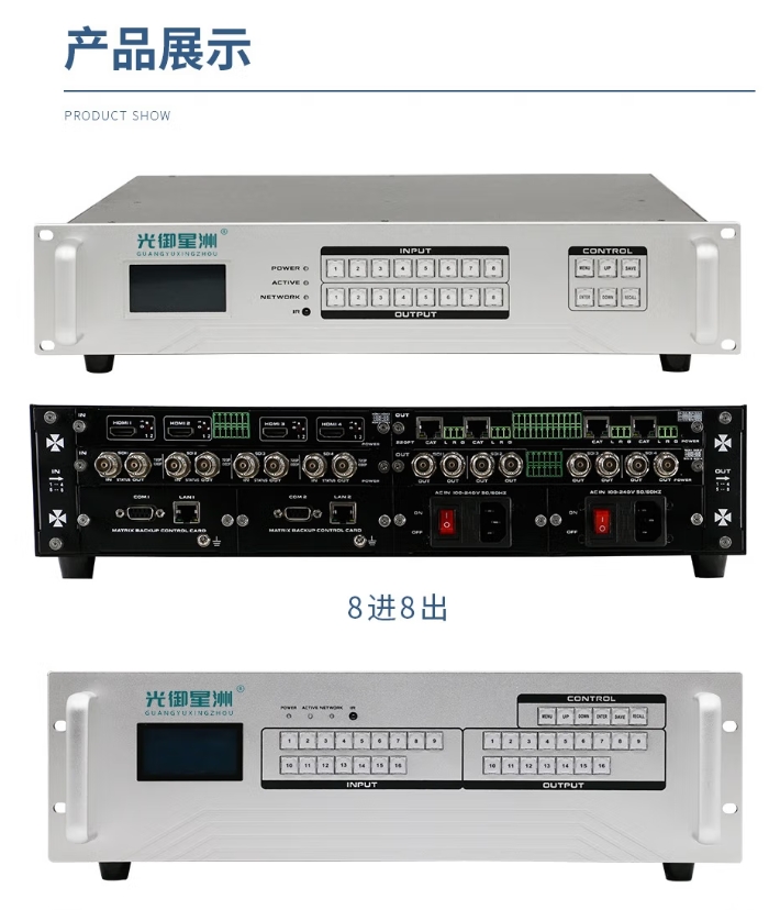 光御星洲 GY-HD8080 高清视频无缝插卡式混合矩阵切换器一卡四路HDMI/DVI/VGA 64进64出 含板卡