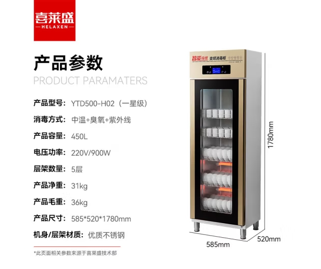 喜莱盛消毒柜商用保洁柜立式消毒碗柜可手势控制 食堂餐具茶具消毒柜中温一星级YTD500-H02