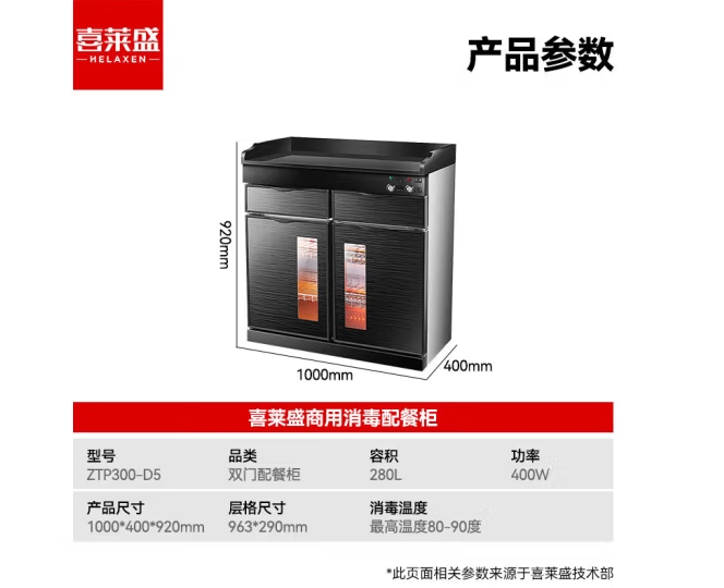 喜莱盛商用茶水消毒柜大理石台面 餐厅火锅店餐具茶杯消毒柜多功能餐边柜双门带抽屉ZTP300-D5
