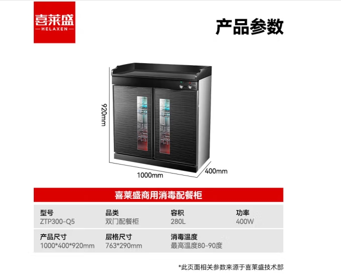 喜莱盛商用茶水消毒柜大理石台面 餐厅火锅店餐具茶杯消毒柜多功能餐边柜双门ZTP300-Q5