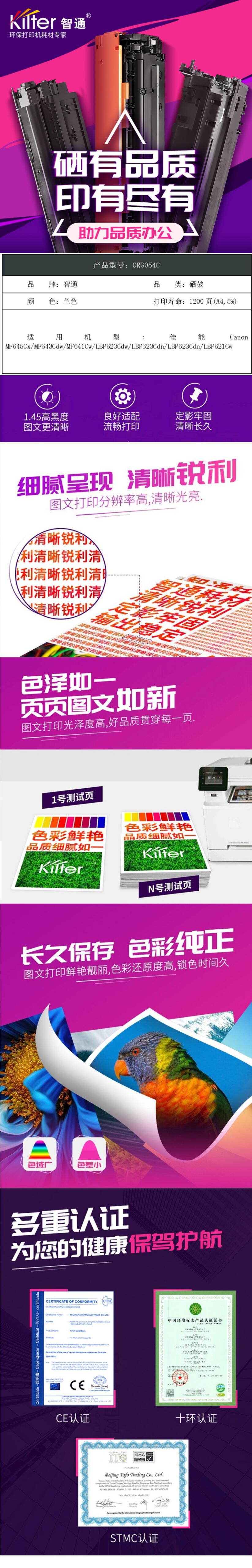智通 CRG054C 硒鼓 兰色 适用佳能Canon MF645Cx 643Cdw 641Cw LBP623Cdw 623Cdn 623Cdn 621Cw 1200页