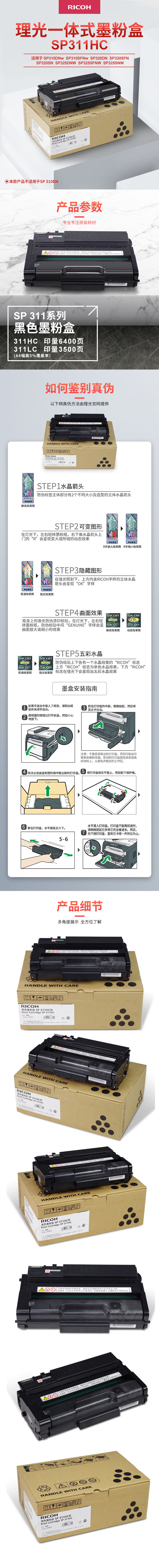 理光(Ricoh)SP 311HC 一体式墨粉盒1支装 适用于SP 310DNw/310SFNw/ 320DN/320SN/325DNW/325SNW