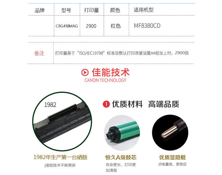 佳能(Canon)CRG-418M 红色硒鼓(适用于iC MF8380Cdw/iC MF8350Cdn/iC MF8580Cdw/iC MF727Cdw)