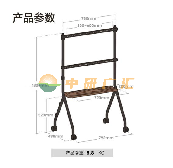 Brateck北弧(43-75') 电视推车 艺术电视支架 落地电视架 65电视挂架 70移动壁挂架小米索尼海信FS350