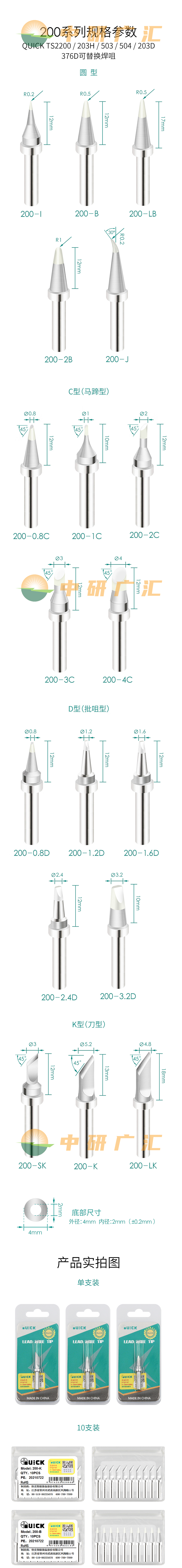 QUICK快克 焊台焊咀200系列单支烙铁头 200-LB×1支
