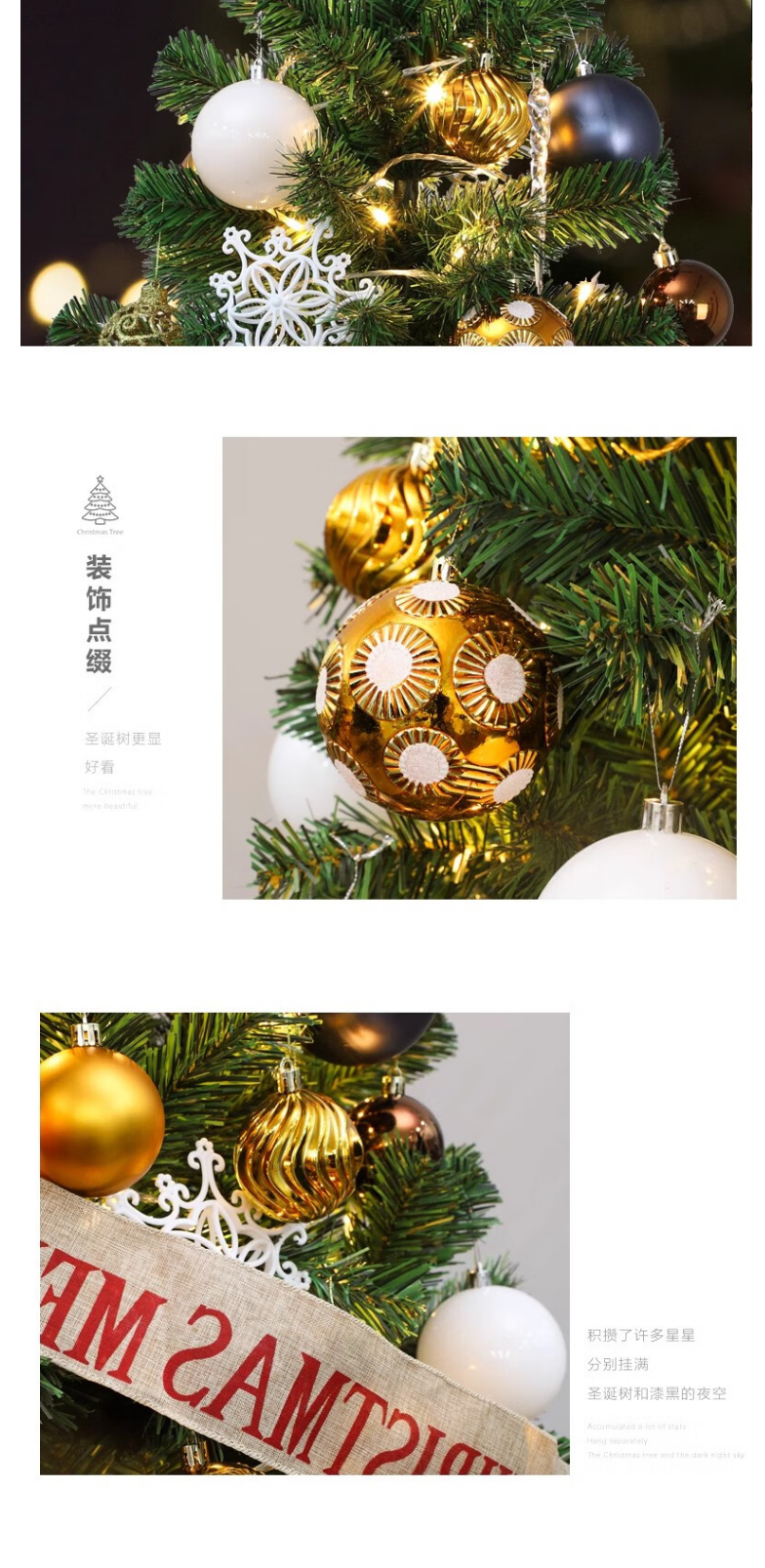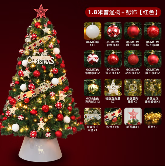 米魁 圣诞树装饰品商场酒店节日氛围diy家用大型豪华加密圣诞节发光 1.8米加密树+配饰(红色)
