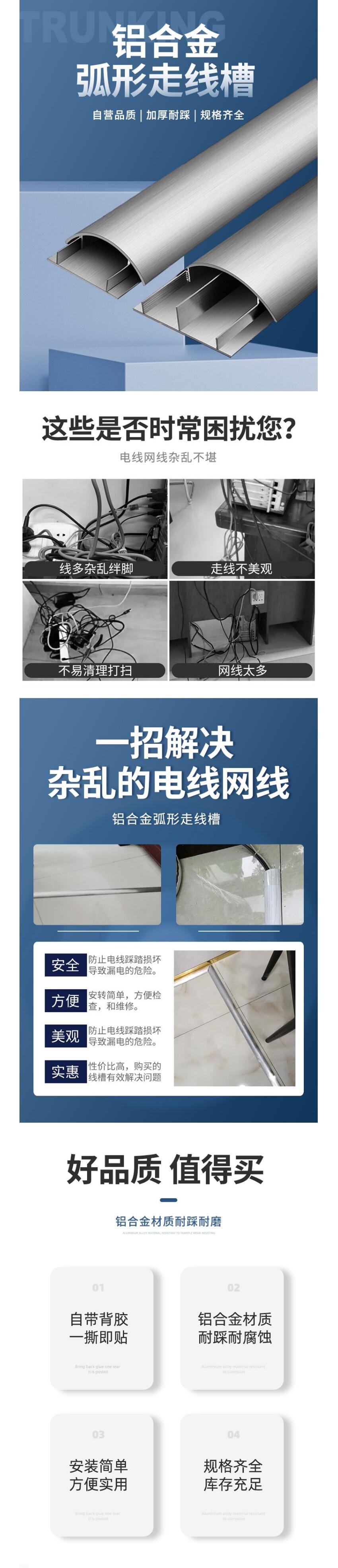 百舸 铝合金线槽板明装耐踩半圆地面压线过线槽弧形穿线板电线布线槽特厚网线槽 6号 一米/根 一根装