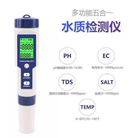 惠利得 PH计/盐度/温度/TDS/EC五合一水质测试仪分析仪便携式 数显检测笔