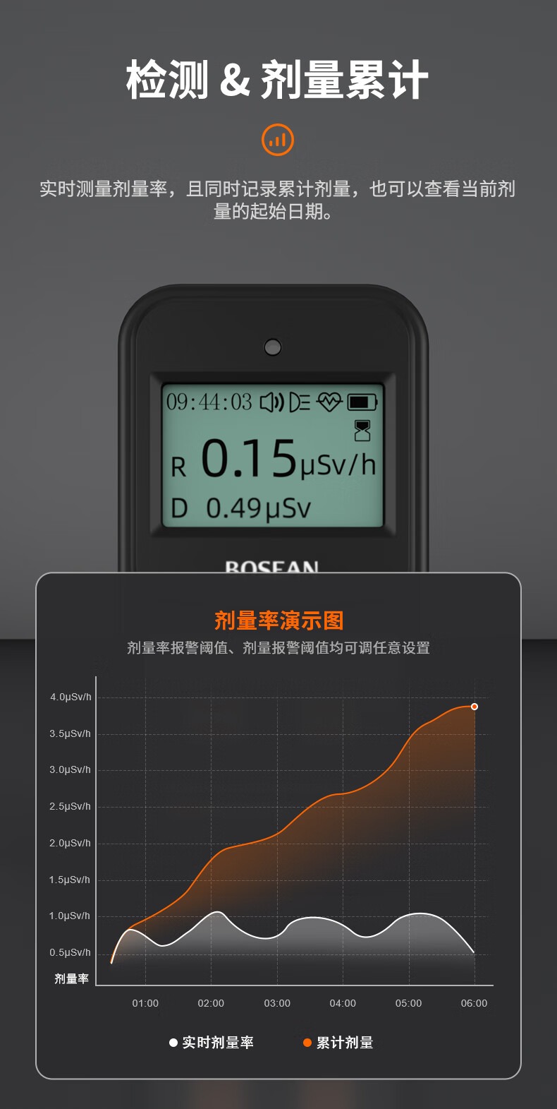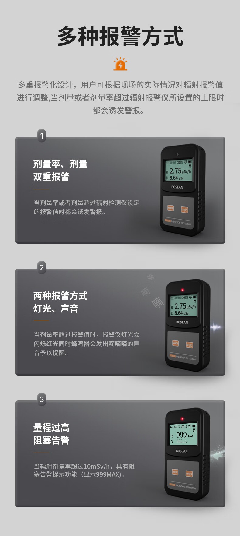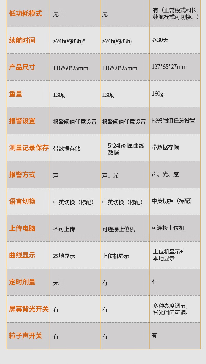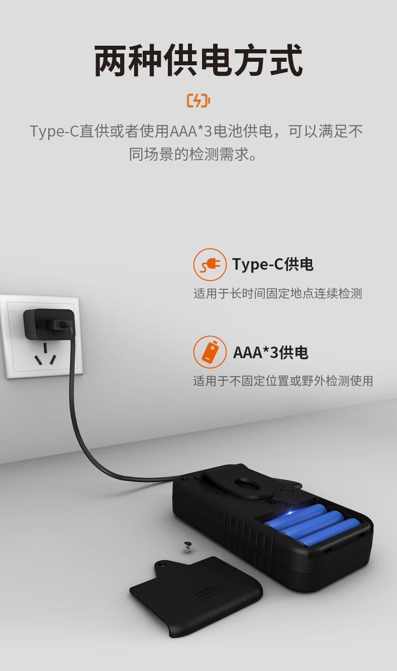 包装清单 磁吸包装盒,说明书,合格证,核辐射检测仪,数据线,螺丝刀,辐射报警仪内含有3节7号电池。