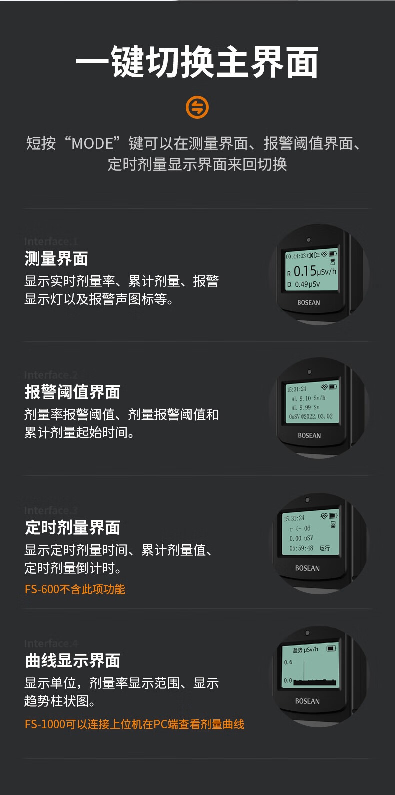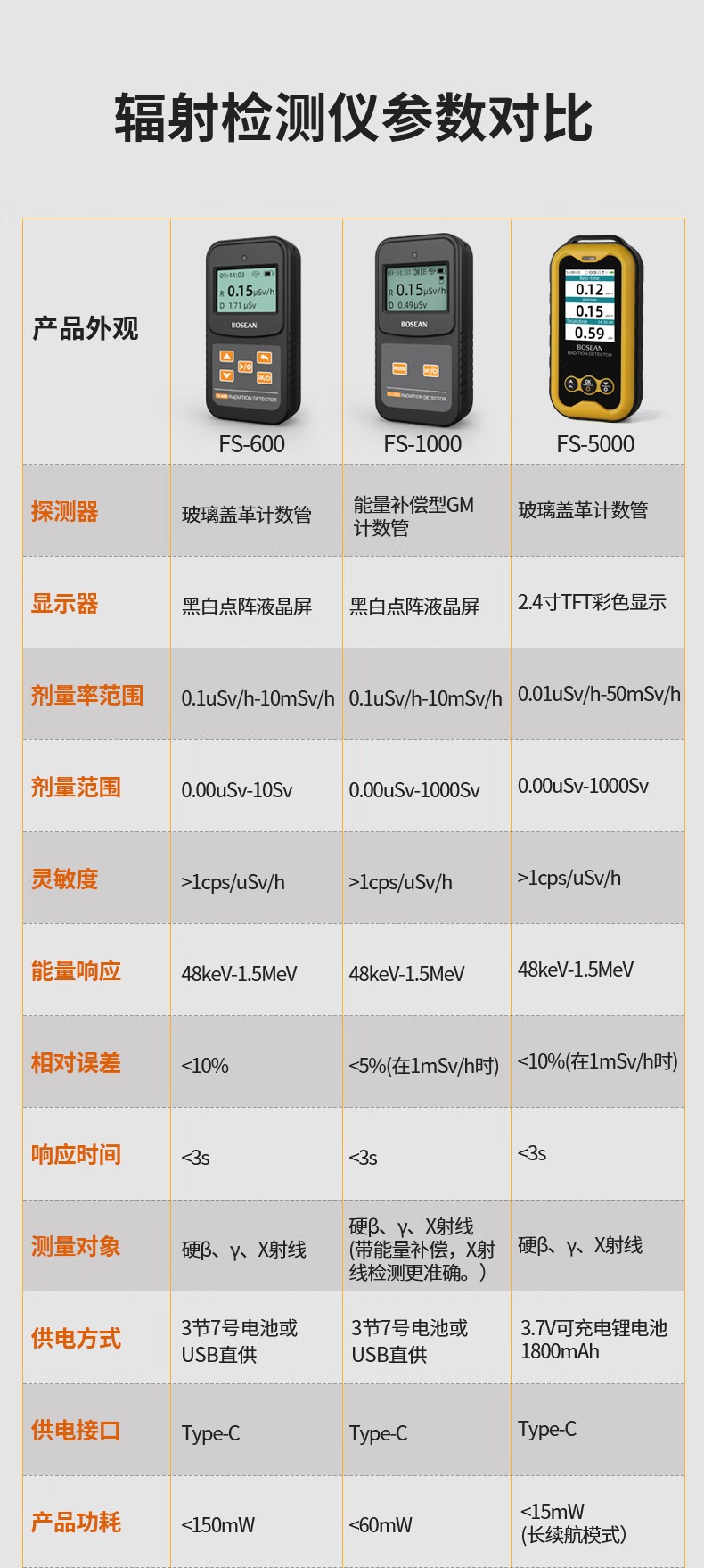 保时安核辐射检测仪大理石放射性射线辐射测试仪专业盖革计数器FS-600