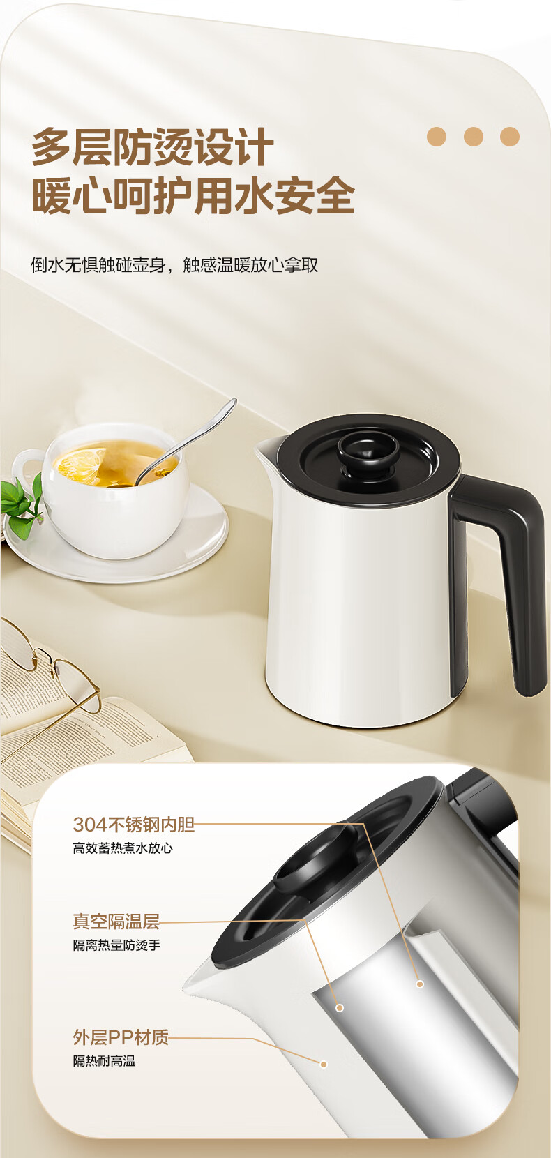 美的(Midea)电热水壶烧水壶保温热水壶1.5L大屏温显5段