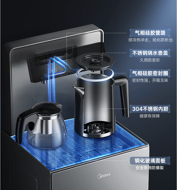 美的(Midea)YR1906S-X茶吧机 饮水机 下置式 触控数显屏 钢化玻璃门 温热型