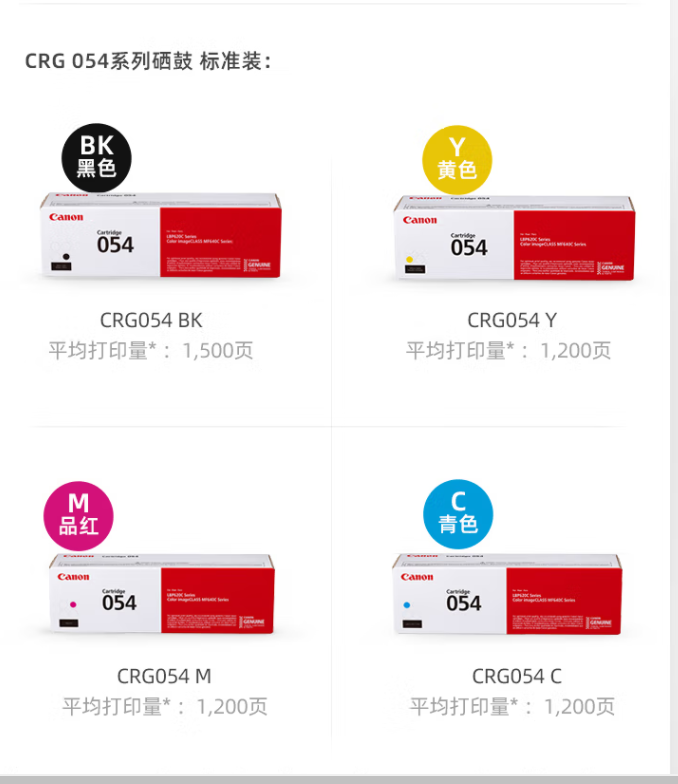 佳能(Canon)硒鼓CRG054 C(适用MF645Cx/MF643Cdw/MF641Cw)
