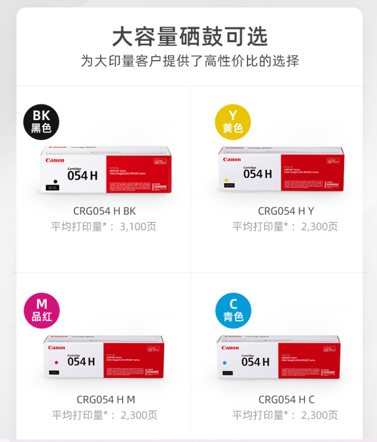 佳能(Canon)硒鼓CRG054H Y(适用MF645Cx/MF643Cdw/MF641Cw)
