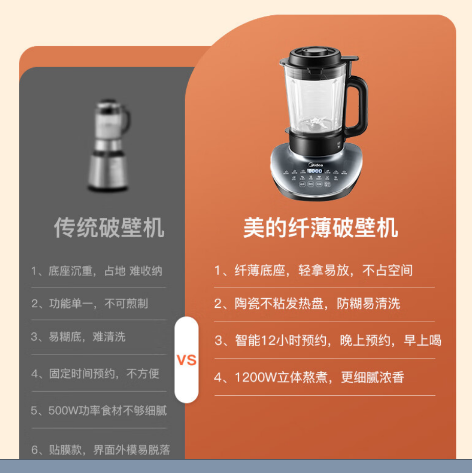 美的(Midea) 破壁机多功能家用触控多功能智能预约豆浆机榨汁机婴儿辅食机搅拌机果汁机【商场同款】 PT52